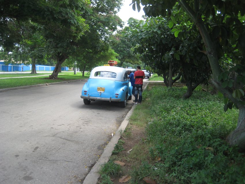 This group of taxis is one block south of the main avenue. Upon inspection one will notice that these cars sit a little higher than when new. They are all rebuilt many times and the springs are new.