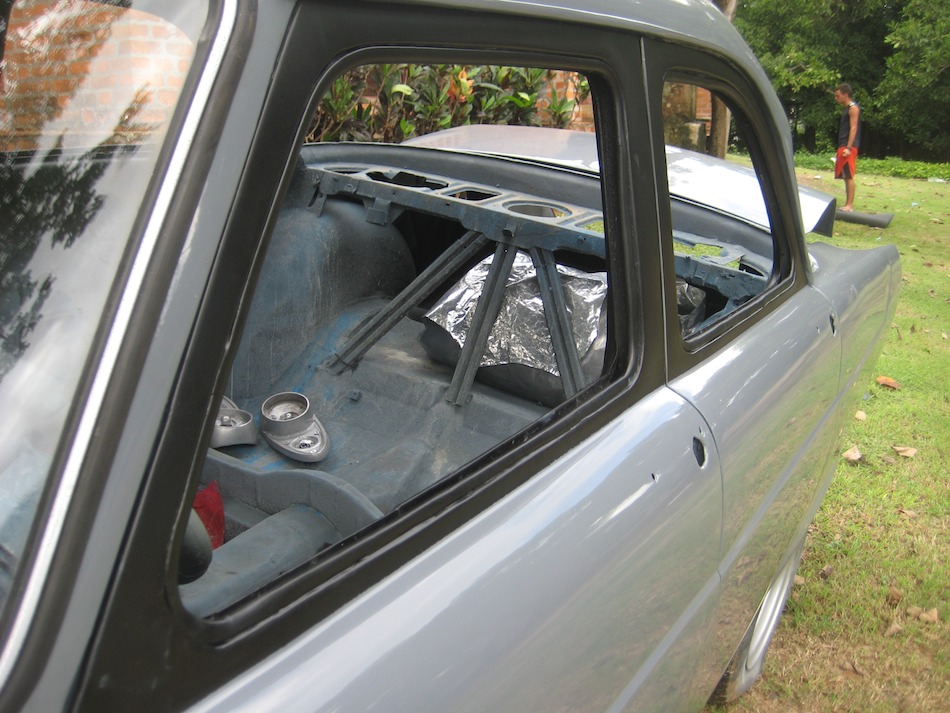 The old vehicle had been stripped bare, cleaned and then painted, inside and out. I thought at first the paint was primer gray, and then I noticed the interesting black detail around the Windows and how shiny the new gray paint is. We talked briefly about the restoration project but the people working were preoccupied with the complexities of their project. I walked on around the building wondering what it could be, I knew repairing one old car would not be all that met my eye.