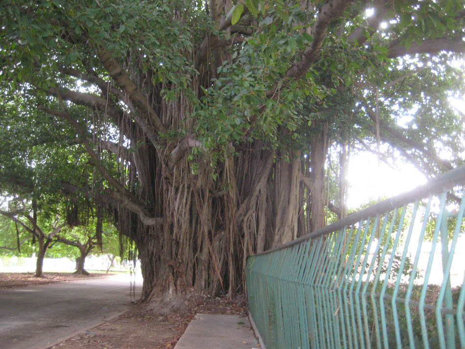 When I reached a larger Avenue still on the perimeter of the facility I was blocked by this giant tree, it ate the sidewalk and fence but does not appear to like road pavement, perhaps exhaust fumes are unpleasant to tree life.