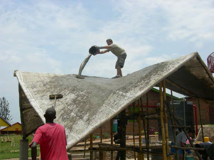 The fourth panel is not yet place so there is access for application of the acrylic and cement mixture.