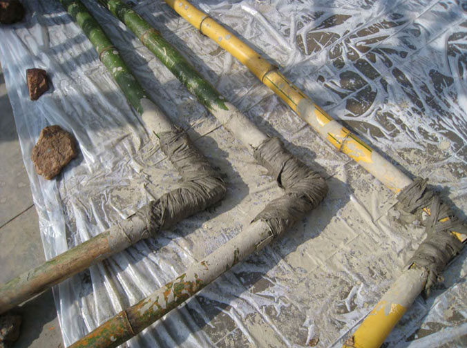Muslin soaked with cement and acrylic creates a strong union.