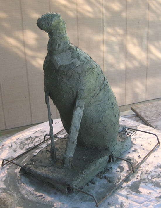 A lean to the right side is compensated for by shaping and addition of more material on the left side. A neighborhood art critic showed up at this point and mentioned that the shape looked more like a bowling pin or a penguin with a dinosaur head than an Egyptian cat. My response was that this is a model to illustrate technical aspects of a material which is perfect for sculpture as well as sculptured structures. ÒSo show us how to fix something that doesnÕt look right,Ó the critic answered without missing a beat. ÒCan you fix it?Ó Yes. First, let the structure cure a few days and gain strength.