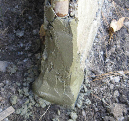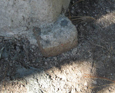 Leveling supports for frame before the wall plaster are next to removed. Plaster was held away from the support brick, inside. Dig under brick, push it downward and remove.
