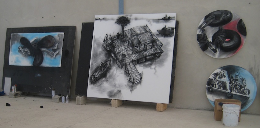 The artist, Kcho, returned to his work and I photographed some of his paintings, which I present here.