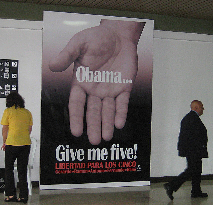 Turn left, then right ... and then right again. Three days passed before I realized the full meaning of this poster, it asks Obama to release the Cuban Five from unjust imprisonment.