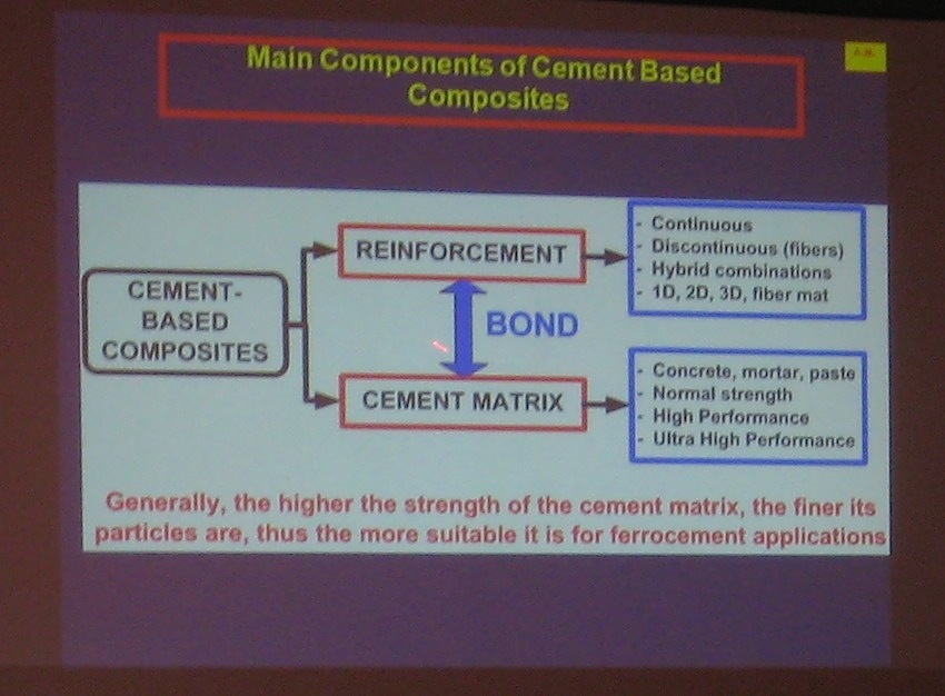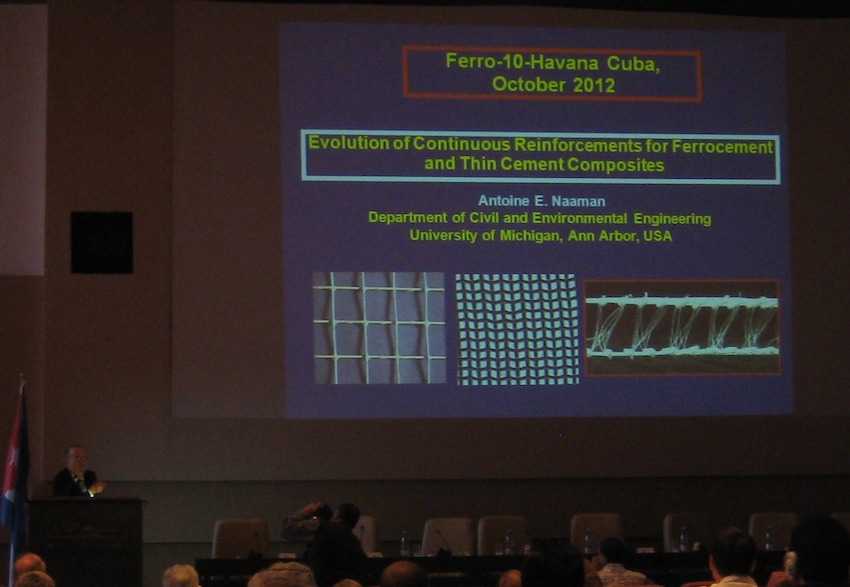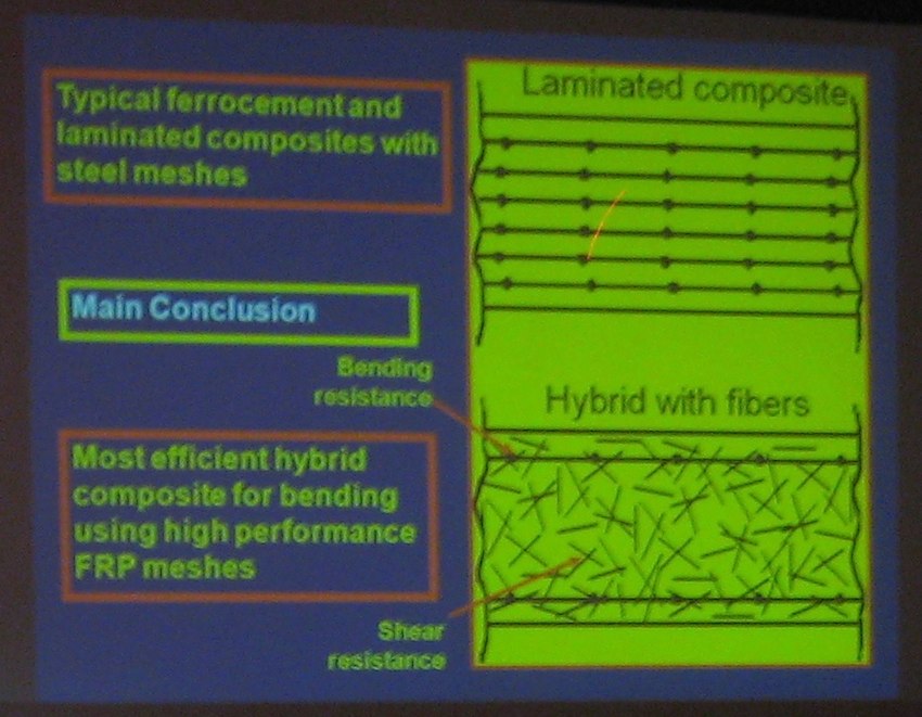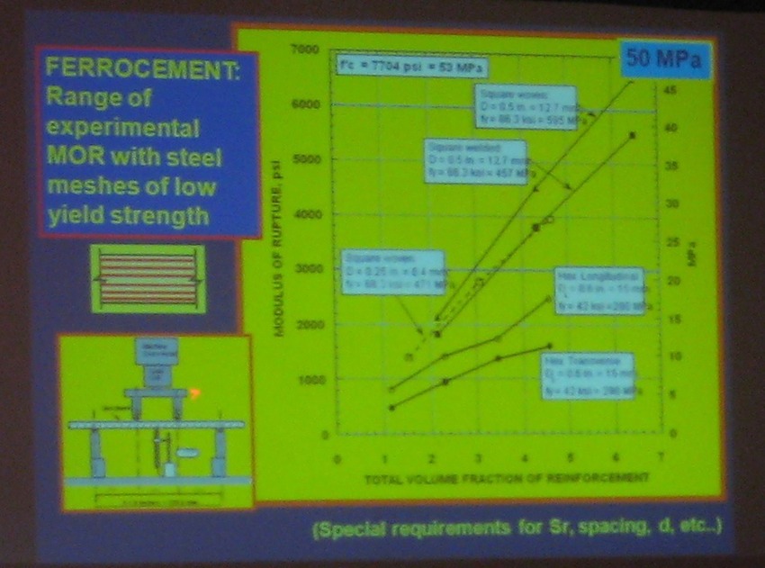Professor Naaman is a world renowned expert who has kept up with and taught all the advances in ferrocement as-well-as standard reinforced concrete. He and I enjoyed an interesting conversation about how I had become the caretaker of ferrocement.com, in 1999. One of the organizations he was involved with in Cambodia already owned the website name but forgot to pay when the bill was due, just when I bought it. On the last day of the symposium I expressed a certain usurpers regret tempered by the strong personal duty I have felt to maintain ferrocement as a construction material of the people. He hugged me and thanked me for the communication I have managed. A hug for me from a giant man of the ferrocement arts.