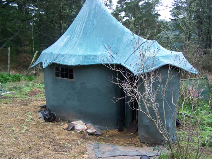 Low cost structure of fabric, cement and acrylic. This small structure weathered a coastal hurricane with winds of 225 kilometers per hour (140 mph) and is reported as completely waterproof.