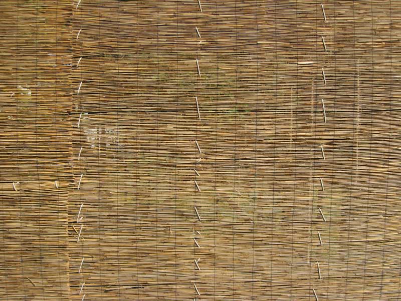 Examine this corner where the reed and willow meet, notice that the material is held back from the corner slightly to make it easier to push plaster inward with the pump action from the palm of a gloved hand.