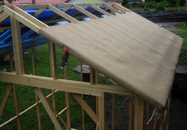 The bamboo test section and the mold descriptions that follow make roofs identical to what is pictured above. The last page of this section is longer and contains details of construction. Notice the angle of the rafters as they reach the ridge in the above photo; some of the mold development covered later involves half roof sections exactly as pictured.