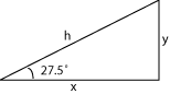 We are referring to the distance to the center as "x" (two meters) and we are solving for the height of the roof peak which is labeled "y." Without trigonometry tables we resort to the computer and type "tangent 27.5 degrees" in the google search box, hit return and the solution is rendered = 0.520567051. Two meters multiplied by 0.5206 is 1.04 meters, which is the height of the top of the truss.