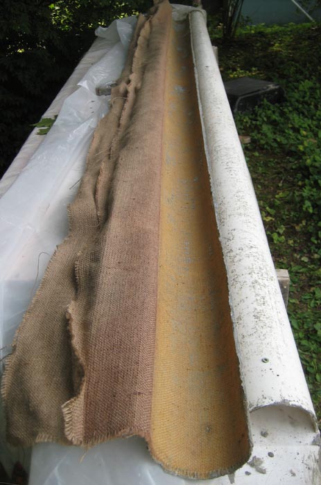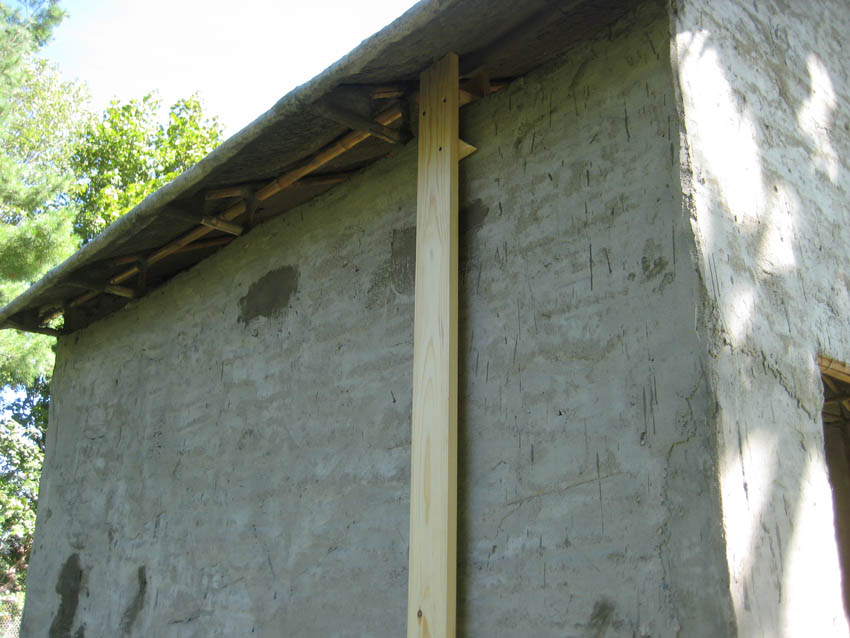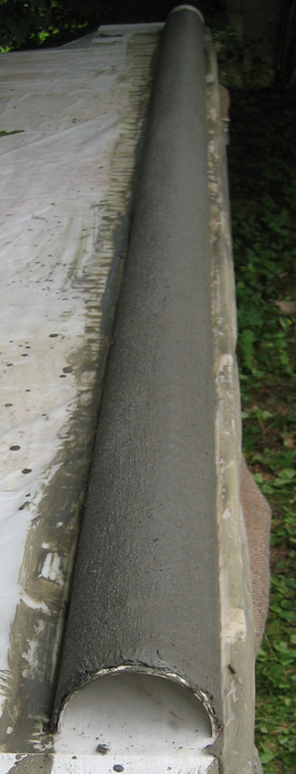 La primera prueba de este molde canal de la lluvia estaba al otro lado de la casa de prueba. El canal de la lluvia se hizo en su lugar, en la estructura. Quiso el destino que tienen, llegaron las lluvias. Era fácil para cubrir este ejemplo con el plástico cuando la lluvia ocurrió. Este canal de la lluvia se deja curar diez días bajo una cubierta suelta de plástico que permite una entrada poco de aire.