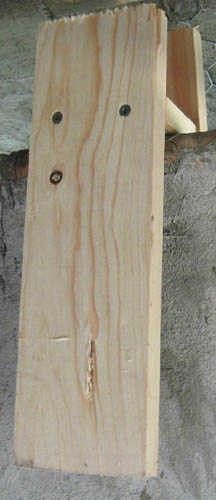 El siguiente paso es la instalación actual. Comenzar con algún método para la celebración de la canal de la lluvia en su lugar. Esta foto es una abrazadera temporal que se celebran fuera de la superficie de la pared con una pequeña pieza de madera de dos centímetros de espesor.