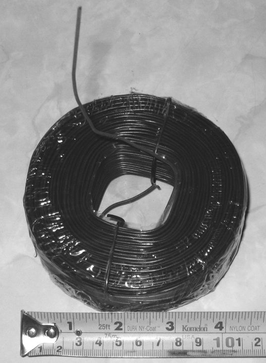 Tie wire is purchased at masonry supply stores in standard rolls of mild steel. These rolls are sized to fit a reel. If you do not use a reel, pull the wire from the center of the roll. Cut 7 - 8 centimeter lengths ± (3" ±) and place them in a belt pouch for rapid removal and tie work. Duct tape wrapped around the outside of the wire roll will preserve the roll shape and help avoid wire tangles.