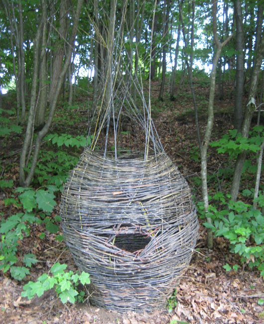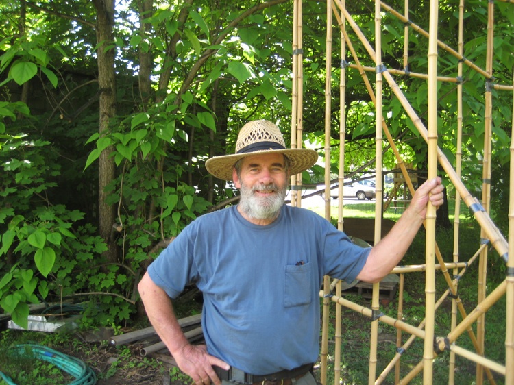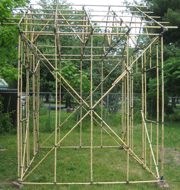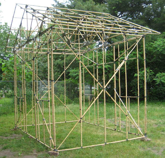 Seen nearby ... illustrates one way sapling wood can replace bamboo as the armature for space-age mud and wattle.