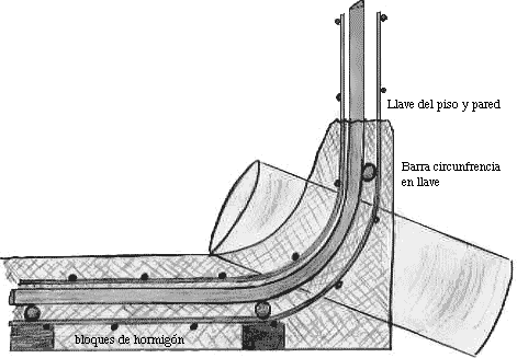 Un mŽtodo alternativo de instalar los tubos es haciendo girar estos antes de que haya endurecido el mortero. Humedezca y quite los tubos suavemente cuando el mortero estŽ lo suficientemente duro y mantenga su forma. Los herrajes est‡ndares del tanque con una arandela de goma en el interior impiden el desplazamiento a travŽs de los orificios y pueden ser sustituidos cuando sea necesario. Esta opci—n requiere mantener todo el tiempo la junta de goma alrededor del tubo. Tenga todas las conexiones en el sitio antes de que el mortero del piso se coloque para estar seguro de un ajuste apropiado. Compruebe al d’a siguiente para estar seguro que el mortero no ha salido de su lugar y las conexiones del tanque pasan a travŽs de los orificios. Los orificios se pueden hacer un poco m‡s grandes usando un pedazo de barra de refuerzo como una lima ‡spera antes que el mortero se ponga demasiado duro.